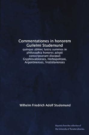 Read Online Commentationes in honorem Guilelmi Studemund; quinque abhinc lustra summos in philosophia honores adepti conscripserunt discipuli Gryphisvaldenses, Herbopolitani, Argentinenses, Vratislavienses 1889 [ [Leather Bound] Reader
